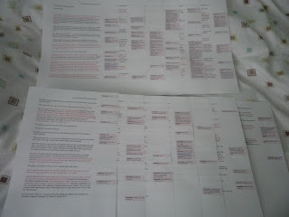This is my weekend. This pretty pile of paper. Draft two of a story with ugly sentences in red and notes on things to fix in the margins. By the end of Sunday, I want to have almost no red and most of the comment boxes deleted.